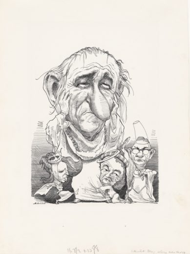 The one-room exhibition consists of 30 objects including photographs paintings, prints, drawings, and magazine covers. Curator James Barber explained that in putting together the exhibition, the museum tried to use as much of its collection as possible. “What you are seeing is 50 years of collecting,” he said. In 1978, the Portrait Gallery was gifted 2,000 portraits that once graced the cover of Time magazine. Included in the show are David Levine’s drawing “Johnson as Lear,” that depicts the beleaguered president as the tragic king, and Roy Lichtenstein’s “Gun in America,” that takes aim at the rising threat of gun violence.