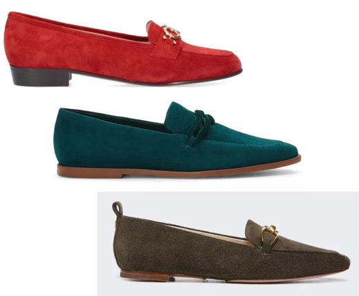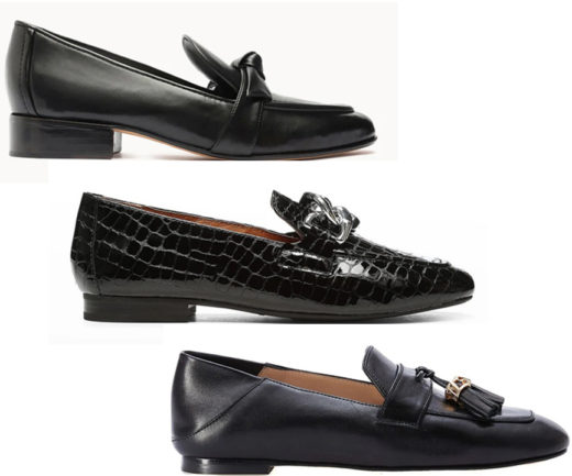 Bristol Chain Embossed Loafers by Donald J. Pliner: 0.5″ stacked heel Almond apron toe Notched vamp with chain strap Slip-on style Leather lining Rubber outsole $178.00