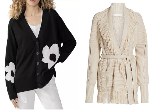 Left: Floral Cardigan Sweater by Sanctuary: Cotton/nylon. Collarless Long sleeves Button closures at front $139.00