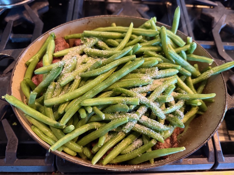 On a lazy Sunday when you’re staying close to home, this is 3-ingredient comfort food at its best. I won’t make any claims about heaven or comparisons to warm hugs. But I will say without reservation: 1) your kitchen will smell great; 2) your dinner will be delicious; and 3) you may decide that when it comes to green beans, murdering them is the way to go.