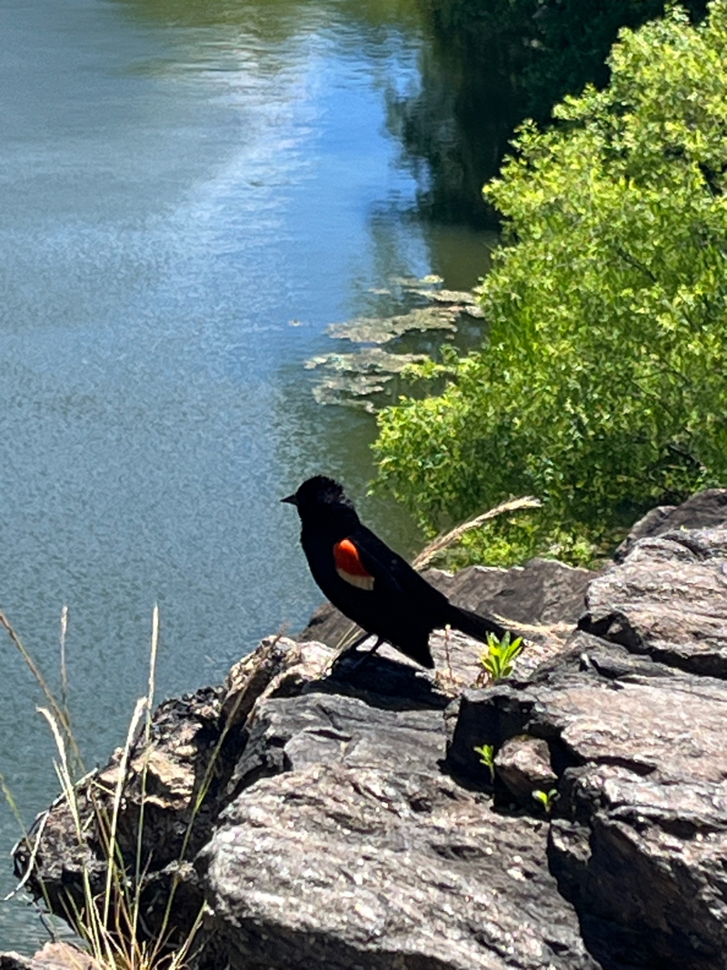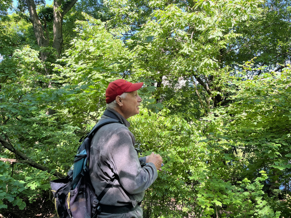 Bob’s knowledge of Central Park was immediately put on display. When we paused in one area to watch nests created by Baltimore orioles, Bob said it was the birds’ favorite spot which he has watched for 30 years. At each stop, Bob played certain bird calls, one captivating a red winged blackbird who came close to where our group stood on the top of Belvedere Castle.