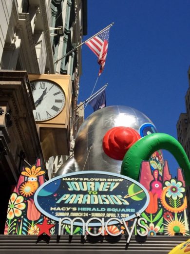 The Macy’s Flower Show, “Journey to Paradisios, Operation Inspiration,” with its imaginative space theme, is happening at the company’s Herald Square store now through Sunday, April 7. Flower shows are also being exhibited at Macy’s marquee stores in Chicago and San Francisco. During the two week show, millions of people will be strolling past Macy’s display windows and visiting the stores to take pictures, and celebrate spring in all its glory.