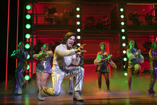 It turns out he actually did tell his story in chronological song. Without having to shoehorn selections into illumination of events, those chosen seem apt throughout. All but a couple are performed by young Diamond (Will Swenson) as they were familiarly recorded, eliciting much chair/seat dancing and singing along, only some solicited. Additionally, the two wives we meet each have a number – showing vocal chops.