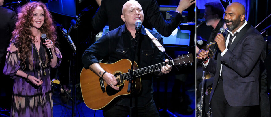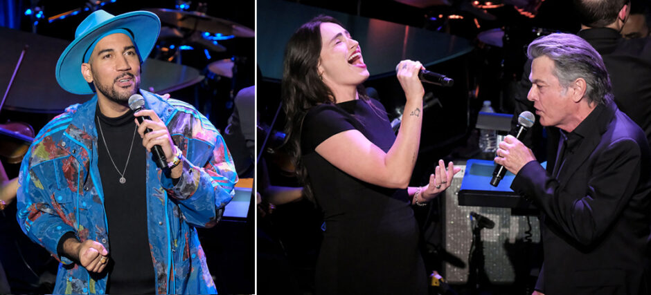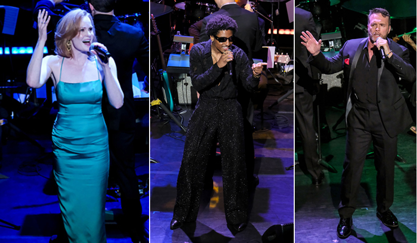 Myles Frost, sunglass-wearing star of the musical MJ (Michael Jackson), offers “Bright Side of the Road” moving across the stage with the swivel/slide fluidity of the character he plays. What, no moonwalk? Former Phantom of the Opera, Ciarán Sheehan, sings “Into the Mystic” as if his powerful tenor-with-an-edge is literally propelled by the music. Step, tap, step, tap, he fist-bumps the orchestra.