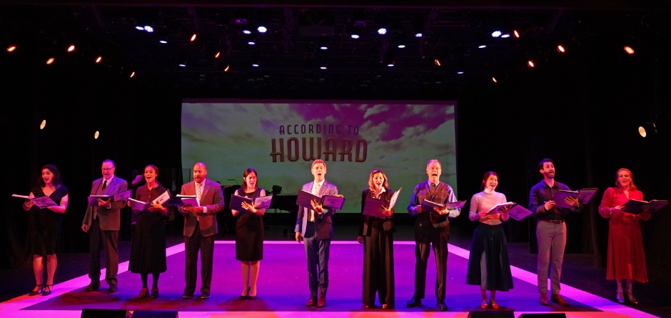 Adult Howard (Michael Halling) navigates film production in California. The musical exemplifies this part of his life with a number centering on the 1930 four million dollar flying film, Hell’s Angels. It’s a well arranged amalgam of distraction and perfectionism. The now-producer is tracked by gossip columnist Rita Randolph (Haley Swindal). New hire Noah Dietrich (triple threat David Elder) will do everything for the boss but wipe his nose for 32 years before being summarily fired for demanding well earned equity.