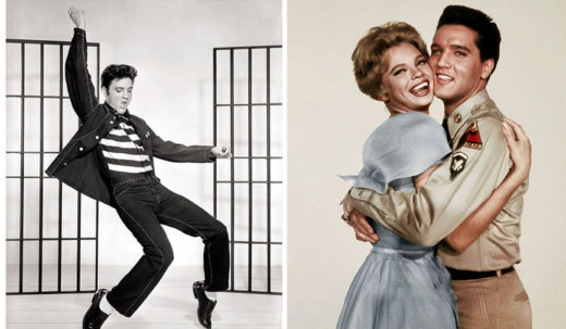 Elvis Presley in Jailhouse Rock; Elvis Presley with Juliet Prowse in G.I. Blues (Public Domain)