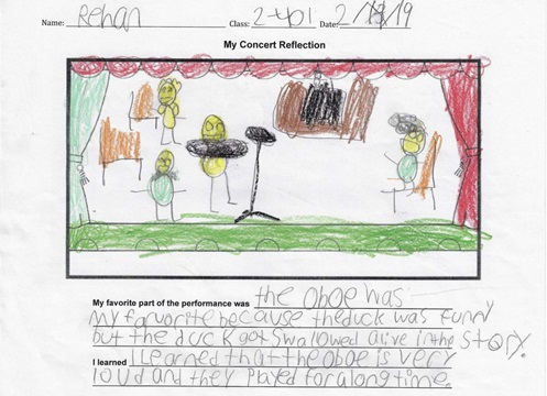 A parent wrote: “Seraphina really loved today’s performance of Peter and the Wolf. She told me about it right away when I picked her up. ..But the best was tonight when she put on the music for Peter and the Wolf and acted out the entire story – along with the music – the way she said the mime did today.”