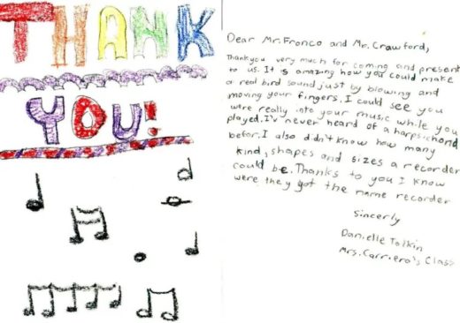 Mexican recorder virtuoso Horacio Franco, lead a series of Vivaldi and Bach concerts alongside Thomas Crawford who was dressed as Vivaldi. Franco, I’m told, wore his own leather pants, open-chested shirt, and silver sneakers to which the children undoubtedly related. “The Magic Recorder” toured 30 schools until stopped in its tracks by pandemic shutdown. Miller tells me 80 percent of students in elementary school are given recorders as their first instrument. Some learned short tunes beforehand and played with the master.