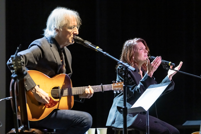 This evening, we’re treated to duets of original songs and a few covers by she and master guitarist/composer/husband John Leventhal, who makes a band unnecessary. Many of the songs are by Leventhal/Cash.