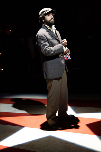 Charles Guiteau, assassin of President James Garfield, is represeted by Will Swenson’s maniacally giggling, captivating characterization of a man whose main dream was to become the ambassador to France. The actor wears Guiteau’s impermeable optimism like a coat. Leon Czolgosz assassinated President William McKinley. Brandon Uranowitz is totally credible as the accented immigrant who was inspired by Emma Goldman (Bianca Horn) to put anarchistic beliefs into action in the name of class equality. “They make us servants.”