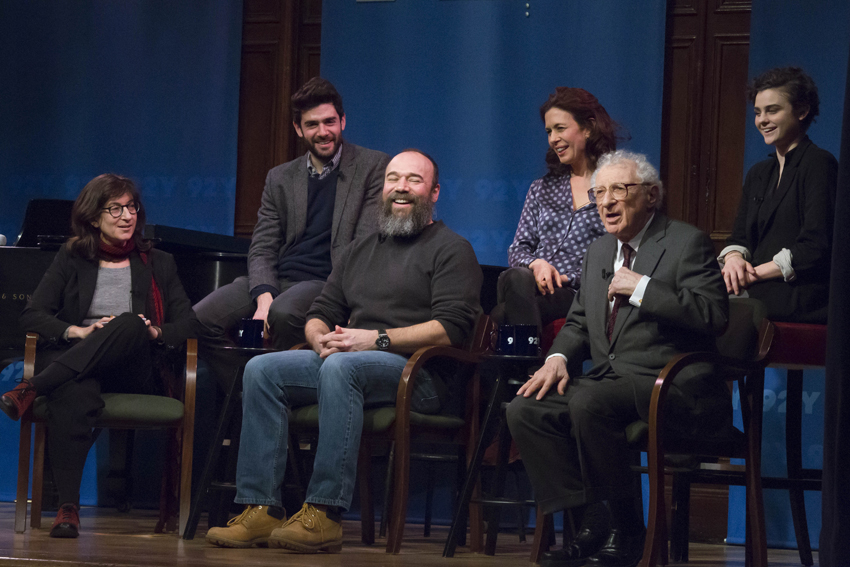 Unless you’ve been hiding under a rock, you’re aware that the iconic Fiddler on the Roof is buoyantly back on Broadway. (See my earlier piece.) Sunday night, 92Y Talks presented an intimate conversation with some of the people making this latest revival successful. Lyricist Sheldon Harnick, the only living member of the musical’s original creative team, was joined by Danny Burstein, this production’s Tevye, Jessica Hecht (Golde), Adam Kantor (tailor, Motel Kamzoil), and Melanie Moore (daughter, Chava). Alisa Solomon, who teaches at Columbia University’s Graduate School of Journalism, moderated. Sincere mutual appreciation and respect made the event feel like taking a warm bath.