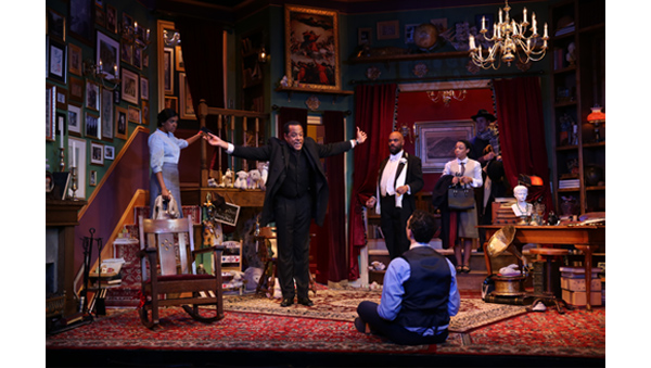 Set in the northeast suburbs of London, the Victorian story has been updated to 1929 requiring some early rewriting of references for which there’s no program credit. It revolves around Candida (Avanthika Srinivasan), the capable, decidedly independent wife of well known Christian Socialist clergyman James Mavor Morell (R.J. Foster). An in-demand lecturer, the reverend keeps two assistants busy, Alexander “Lexy” Mills, in a field for which he seems ill suited (Peter Romano who’s fine, but has little defined character), and repressed secretary Proserpine Garnet (Amber Reauchean Williams, who seems to be trying on personalities throughout the scenario. After one glass of Champagne, her tipsy behavior brightens the second act.)