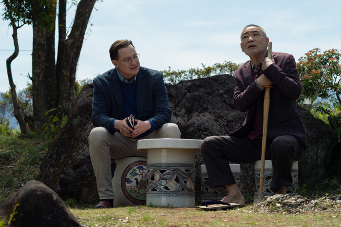 Brendan Fraser and Akira Emoto in RENTAL FAMILY. Photo by James Lisle/Searchlight Pictures. © 2025 Searchlight Pictures. All Rights Reserved.