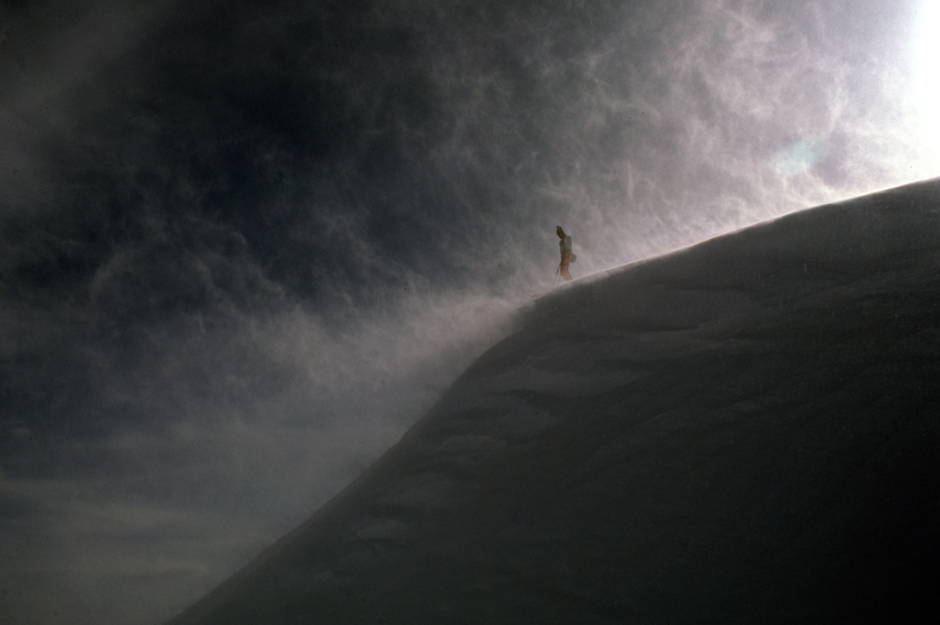 Top photo: Whiteout with a single skier.