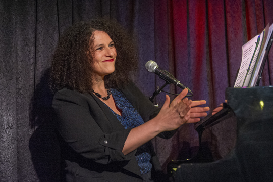 Derow opens with “Chained to the Rhythm” (Katy Perry with Max Martin, Sia Furler, Ali Payami, Skip Marley) … So comfortable, we’re livin’ in a bubble, bubble/ So comfortable, we cannot see the trouble, trouble… Sound appropriate? The singer manages to be intense without growing harsh. Shoulders shift, hips gyrate, right hand punctuates, eyes close. “In the spirit of Martin Luther King…” she then offers “If We Only Have Love” (Jacques Brel) It’s steady, determined.