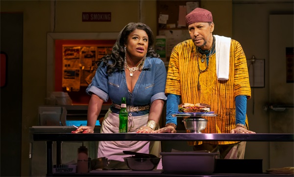 Under the influence of Monty, kitchen staff approaches work with pride. Letitia (Kara Young), a single, Black mother whose child suffers from MS has a sharp tongue and spunk. Rafael (Reza Salazar), a Latino man with exploding hair and volatility/passion to match, barely hides a romantic side. The two play a game with Monty whereby each conceives an elaborate sandwich (edible hope) and the others judge. They stand in a line evoking Charlie Chaplin’s Modern Times. Salivation is immediate. If you haven’t dined before, prepare to do so afterwards.