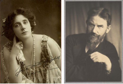 As theater and music reviewer for The Saturday Review, George Bernard Shaw (1856-1950) followed Mrs. Patrick Campbell’s (1865-1940) accomplishments on stage. Never unsure of his opinions, Shaw celebrated or damned performance without middle ground. Surely she was aware of the critic. In 1894, the journalist now playwright achieved his own theatrical success with Arms and the Man beginning a long run of iconic work.