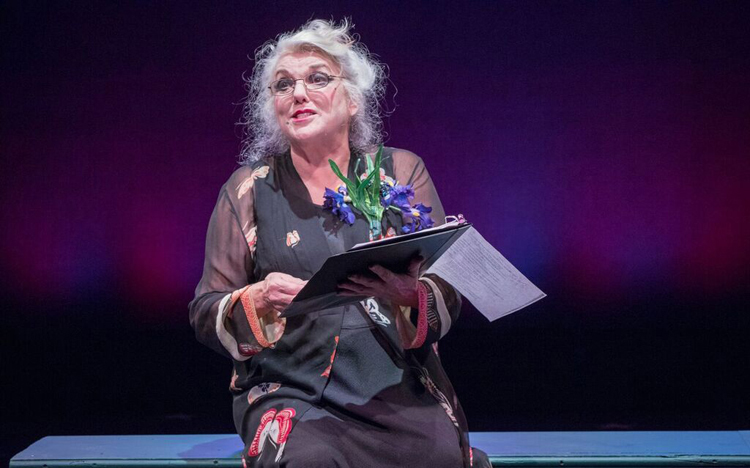 Said plot is cleverly thwarted by Countess Aurelia, The Madwoman of Chaillot (Tyne Daly), whose harmless delusions, sense of justice, and innate wisdom aid, rather than hamper, dealing with the threat. Aurelia conscripts friends and neighbors: Madame Constance (Alison Fraser imbues her character with feminine fragility), Madame Gabrielle (Ann Harada, a bit chirpy but fine with her invisible dog), the local café waitress Nina (Erika Hemmingsen, engaging innocence, lovely voice), Julian, at first The Presidents’ secretary, then part of the opposition (Hunter Ryan Herdlicka, earnest, winning), The Sergeant (Dewey Caddell), The Waiter (Ben Cherry), and The Sewerman (Lenny Wolpe, always a pleasure to watch, here marvelous). “Did you get my lily,” the Countess asks. “It should have floated by around 11:30.”