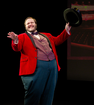 Randy Blair’s P.T. Barnum is more con man than visionary. I assume that’s a directorial choice. Under the circumstances, I’d’ve liked him a bit darker, but the actor has an infectiously good time with the role.