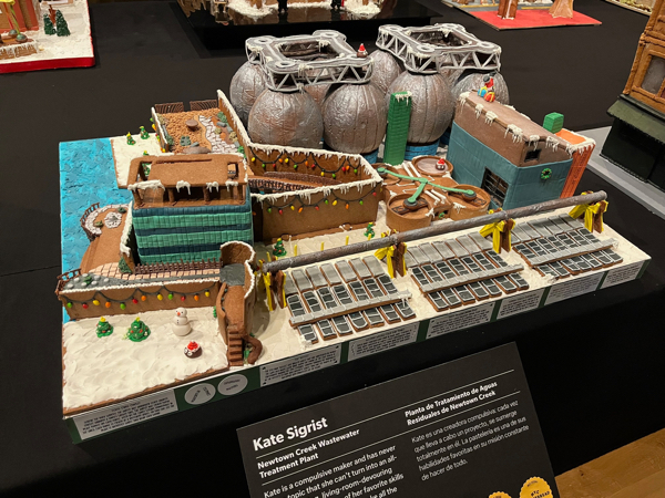 While the main ingredient is, of course, gingerbread, bakers also utilized other sweet items to create the look they wanted. Filiz Cihan, who created The Conference House, located in the Tottenville neighborhood of Staten Island, somehow found the ingredients to mimic the gray stones that define the house, a National and New York City landmark.