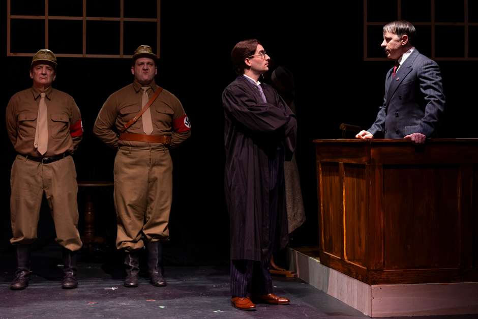 Opening Photo: Storm-troopers (Robert Ierardi and Dave Stishan) stand watch in the courtroom as Hans Litten (Daniel Yaiullo) questions Hitler (Zack Calhoon) by Ben Hider