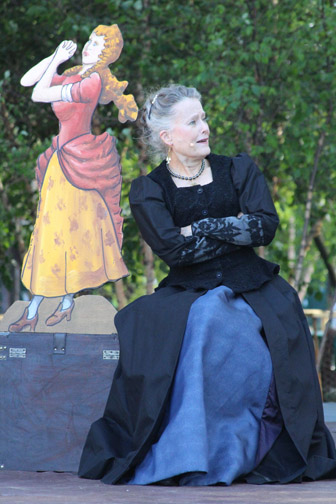 Actress/Designer Nancy Nichols joined in 2008, played Maria in Twelfth Night and has costumed the company every season since. “That first play was a fun ride and a challenge or two. The role was an electric volt for me -lots of movement and comedic dialogue. Costumes were simple. We had enough budget to rent matching doublets and hats for the twins, and something severe for Malvolio from TDF Costume Collection.”