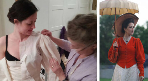 “There are constraints — It’s hot! Most of the historic references I like to mimic were clothes built for the Little Ice Age, to be worn in homes without central heat or most of the comforts we take for granted. (No heat-tech layers) I try not to torture the cast. I use natural washable fabrics, as lightweight as possible, keeping layers to a minimum. If there’s fur on a garment it’s on a hem, not next to the face! I don’t use wigs (unless the actor wants one).”