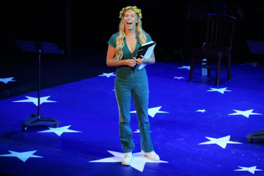 Arango gets many of the more “serious” turns like the corrupt campaign manager delivered with metaphorically eyebrow-raised panache. Berman, a delight to watch, is like a blast of fresh air, throwing herself into every moment with a sense of infectious fun. These two could drop into the leads of Chicago without missing a beat. Tanable adds understated humor to parentheses – a cherry on top – that might otherwise skate by on lyrics. The three dance as if coming off at least a month’s rehearsal, in fact – five days.