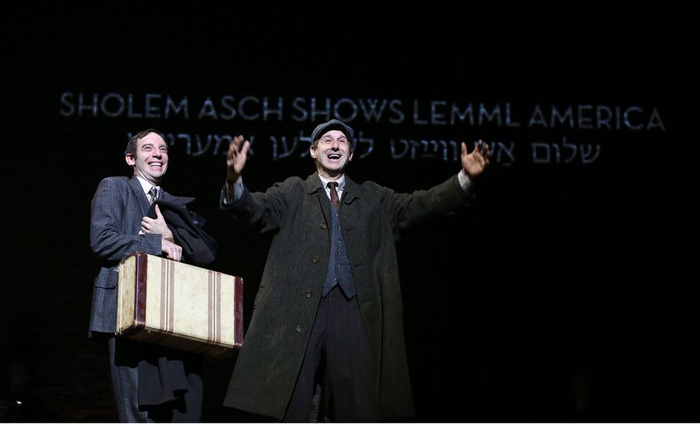 It’s 1906 Warsaw. Polish/Jewish author Sholem Asch, 1880-1957 (the entirely credible Max Gordon Moore) is excited about reading his play at the writers’ salon of cultural figurehead Y.L. Peretz (Tom Nellis, also in a roster of vibrantly realized roles). Peretz spearheads a renaissance of Yiddish writing, Asch’s mother tongue. The piece is condemned by those gathered for showing Jewish people in poor light. Only a tailor named Lemmel, invited by his cousin, is enthusiastic. “A minion,” Asch comments darkly in response, “is ten Jews in a circle accusing each other of Antisemitism.”
