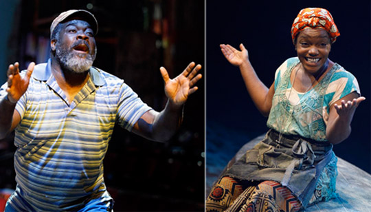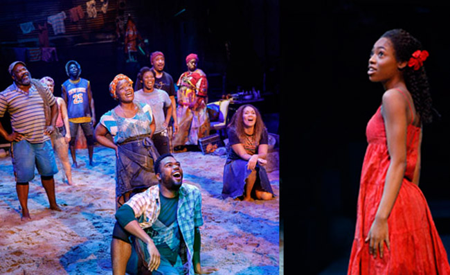 The two young performers, both with wonderful voices, display disarming innocence and poetic chemistry. Also sympathetically grounded are Ti Moune’s foster parents, Tonton Julian (the reliably genuine Phillip Boykin) and Mama Euralie (Kenita R. Miller, here maternal to her core) who rescue her from a tree after the first of several violent storms denude the island.