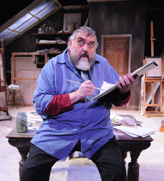 Zero Hour is a helluva piece of writing. Now tightened from two acts (first premiering in 2006) to intermissionless, time-stopping captivation, Jim Brochu’s one man play offers a no-holds-barred look at the quick, wry, perpetually angry leftist; a boisterous man who, though an actor by profession, longed to just paint. This deeply researched piece, as personal as it is historical, illuminates Samuel Joel (Zero) Mostel. Peppered with anecdotes, jokes, and insults, its serious depiction of reasons for the subject’s dark side, including a pivotal run-in with The House Un-American Activities Committee, provides affecting, whiz-bang dramatization.