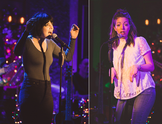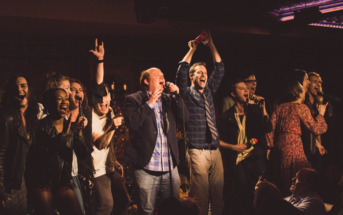 54/Below chatters with anticipation. Every show is a reunion. All this crowd is missing are team t-shirts and a mascot. Audience members table hop, greeting fellow devotees with yelps and hugs. Fans clap, shout, cheer, mouth lyrics and eventually sing, recognizing much of the music and most performers, which change to some degree from evening to evening. Selections are drawn from the writer’s library of both musicals and free floating songs.Joe Iconis leads, plays piano, and sings surrounded by decorative, let’s-put-on-a-show-in-a-barn holiday lights.