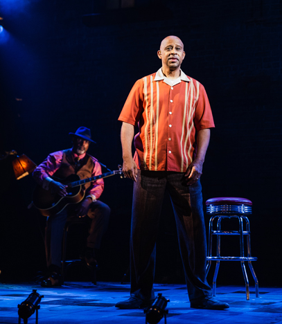 Actual music is provided both by onstage guitarist Junior Mack who plays traditional jazz and blues with experiential ease, and Santiago-Hudson’s professional-level blues harmonica. Integration is seamless. Bill Sims Jr.’s original music sounds as if it belonged to the original cannon. Santiago-Hudson ambles, dances, and morphs sex and age. A tall man, he’s decidedly graceful and deeply rhythmic. When he looks out at or addresses the audience, warmth is palpable.