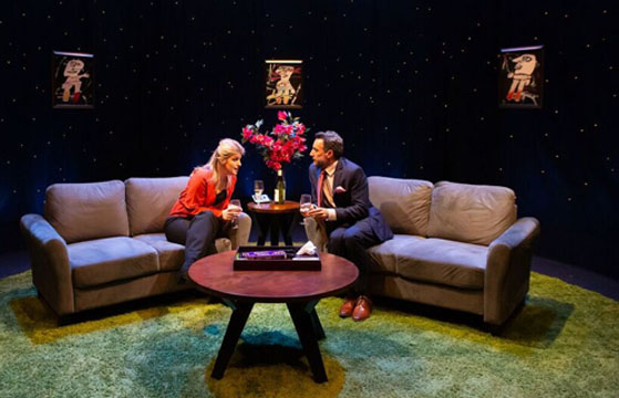 The signature aspect of this Yasmina Reza play written between Tony winners, Art and God of Carnage, is articulate, ballooning confrontation. Whereas Art just maintains decorum and Carnage loses it completely, here middle ground proffers three different possibilities of the same events. A kind of string theory approach, small changes set off different reactions. The play appears to hedge its bets, neither making a specific point nor committing to characters while each gets a tad more civilized.