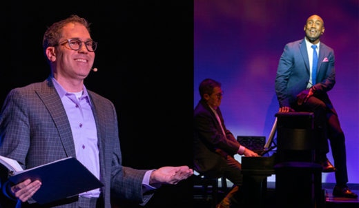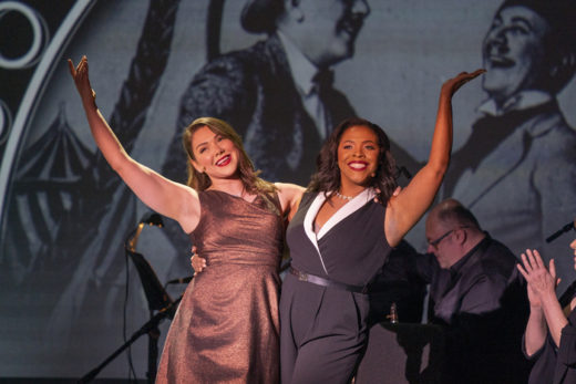 The concert is full of seamless, turnabout performances. Huffman has satiric fun with “It Takes a Woman” (Hello, Dolly!), performed by Horace in the play. Darrington’s “If He Walked Into My Life”…today, with lovely muted trumpet (Jeremy Miloszewicz) is one of Mame’s songs. Parham’s “Anne On My Arm” (La Cage aux Folles), sung by father and son, Georges and Jean-Michel in the show, is here a serenade to Ross (another woman) with whom a charming dance ensues. (Pronouns should’ve changed.)