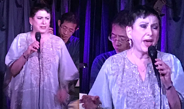 Bill Sanford/Bill Medley’s “Fat Daddy”, the title of Elkin’s most recent CD (my review is on Cabaret Scenes), is, she tells us, about a bartender at The Frolic Show Bar in Detroit. (A little more story would add color here.) Knees bend with a wiggle down as the vocalist sways and nods. Yoshi Waki’s bass sidles in followed by piano. “Fat Daddy, bring it ho, ho, home to me,” Elkins sings.