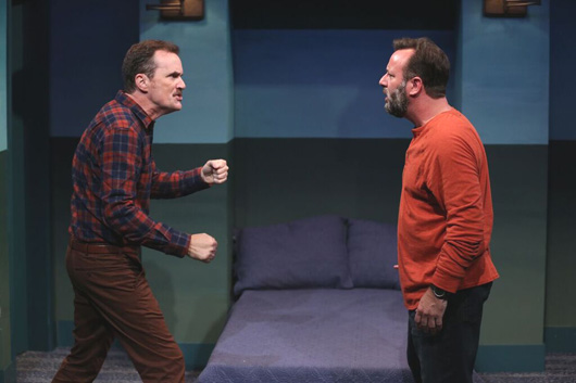 As Edward and Roger, Stef Tovar and Tim Ransom couldn’t be more natural. Both performers appear to think and react in real time. Tovar manifests small, nervous gestures that make his character familiar and sympathetic. He’s entirely credible. Ransom creates a somewhat stiffer Brit, but allows us to see that Roger loves his wife and is trying like hell to man up. A sarcastic speech is ably given its due. Every time Rebecca appears, however, air goes out of the balloon.