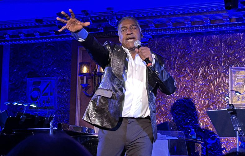 Norm Lewis works his way through the club patting shoulders, shaking hands, singing “Don’t Rain On My Parade” (Jule Styne/Bob Merrill-Funny GIrl). “This is not a show, not a concert. You’ve been invited to my living room…” he tells us. You’d think that’d just mean a more candid approach. What occurs is an excess of patter and personal call-outs, too much reading of lyrics, and surprising lack of focus. Repeated mention of roles and awards not achieved comes off as a tad bitter rather than modesty he protests while listing accomplishments.