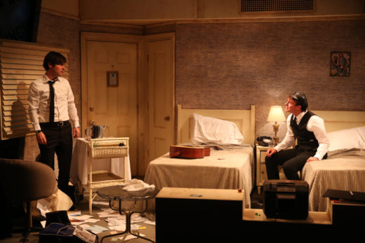 Michael Ganio’s set is about as innocuous as a motel room can be imagined.