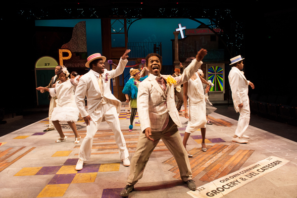 Set in the 1920s (inspired), with one set of twins from Louisiana (aka Ephesus) and one from Harlem (aka Syracuse), this iteration of Shakespeare’s mistaken identity play takes full advantage of the period. Cool, evocative music by Justin Ellington – with a nod to his distant relative and Cab Callaway; terrific costumes by Kara Harmon – accurate, good looking and fun; and an open-house set by Jo Winiarski that pays homage to The Cotton Club, The Savoy, and Jazz Age graphics, elicit anticipation.