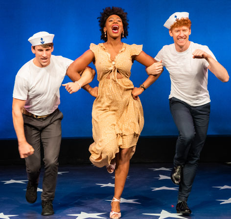 Hattie Maloney (Klea Blackhurst) has been for three years the headline vocalist at a Panama City dive called The Tropical Shore. She’s well known and well liked, especially by carefree, testosterone-driven sailors from a local Naval Base: Woozy (Jay Aubrey Jones), Windy (Garen McRoberts), Skat (Joe Veale – swell tenor). “Join the Navy and get the gravy (girls),” they ably sing.