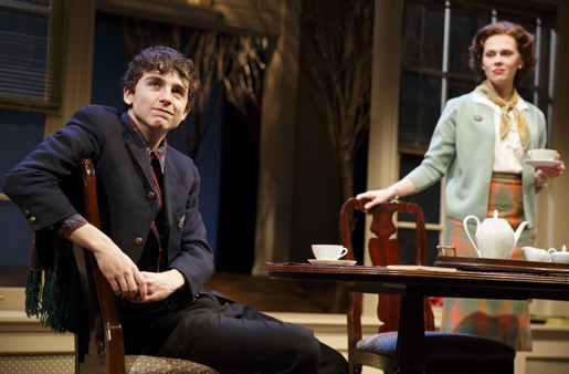 Santo Loquasto’s Scenic Design is inspired. Between two patches of white birch trees (Chekov anyone?) stands the main school building, a receded doll’s house whose window lights go on a off at apt moments. Interiors slide in and out downstage offering just enough particulars.