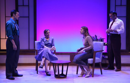 The domineering Ayn Rand (an absolutely superb Orlagh Cassidy), Russian-American novelist, philosopher, playwright, and screenwriter, is holding court in her living room. Young married acolytes, Barbara and Nathaniel Branden, are regulars at these intimate dinners. Rand’s patient, loving husband, Frank O’Connor, is a little drunk and admittedly over his head where his wife’s theories are concerned.
