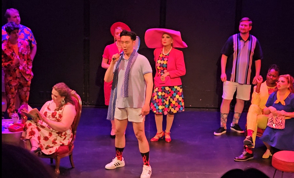 À propos impressive volume, Henry Hyunsoon Kim awed through his powerhouse baritone. From the moment he sang the first notes of “Come Paride vezzoso” it was clear that we were in the presence of a world-class voice, imposing and generous. Making Belcore into a vain, racket-carrying, hair-obsessed tennis star rather than a sergeant actually worked, also thanks to Kim’s stage presence, strutting around in his tennis outfit with his assistant by his side, leaving trails of swooning or upset ladies around him. In his berating of Nemorino, he demonstrated superb minute attention to details of diction, which he could have used more of throughout the rest of the performance. Overall, Kim was a dashing, vocally outstanding Belcore.