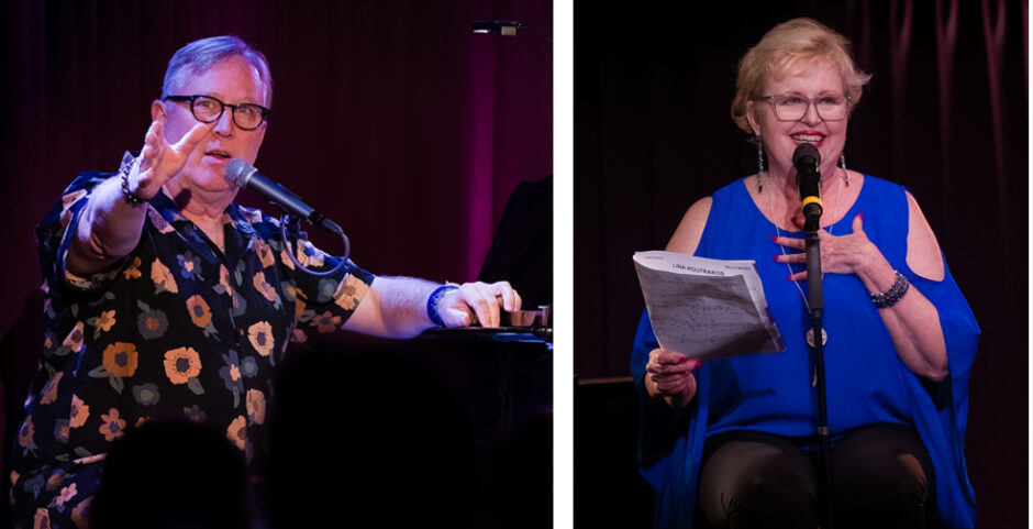 Sally Mayes and MD/pianist Tedd Firth apparently whipped up an original tribute song minutes before the show. These two should write together more. The witty ditty begins by grousing: Nothing “fucking” rhymes with Koutrakos/ The name just seems to lie there on the page and mock us… She’s talented, she’s smart/Now here’s the gooey part, Lina Koutrakos is my darling friend…A nifty segue takes us into Gretchen Cryer’s “Old Friend.” Mayes exudes warmth and the bonds of joint history. (Yasuhiko Fukoka- piano) Nancy Timpanaro-Hogan, who couldn’t be present, celebrates 40 years of friendship and cites those who have passed upon whose shoulders they stand.
