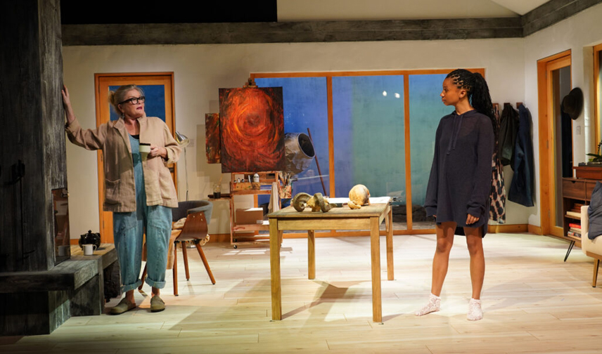 Solitude is shattered by the arrival from America of her adult son, Colm (Zach Appelman), and his new, young bride Bonnie (Ayana Workman). Colm is so hostile to his mother one initially wonders why they’ve come. Bonnie, on the other hand, is thrilled to meet Beiv. Taught the painter in school, she considers her Ireland’s greatest feminist artist. Bonnie sees vast representation in an abstract canvas on the easel.