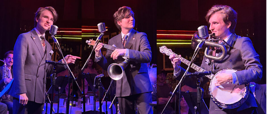 Here we are again, not just back at Birdland, but back in the 20s and 30s with one of its greatest practitioners and flag wavers. Bryce Edwards plays at least six instruments per show. He sings in the nasal, megaphone-like, wah-wah and eef fashion popular then. (Eefing is a cross between scat singing and mouth trumpet, often sung in raspy falsetto.) The term was coined by Cliff “Ukulele” Edwards (no relation). “By the mid 1920s, the unique style spawned all kinds of imitators.”