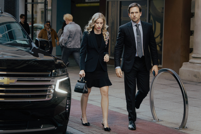 L-R: Elle Chapman as Paige McIntosh and Patrick J. Adams as Russell McIntosh in episode 6, season 1 of the Paramount+ series The Madison. Photo Credit: Emerson Miller/Paramount+