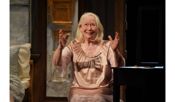 Maire (Marie Mullen ) is gleefully enjoying an after sex “fag” in bed. White-haired and long widowed after a 42 year marriage, she’s astonished. “Gymnastics is what it was!” Facial expression is priceless. It’s Maire’s birthday. As she speaks – to Jesus – her lover is downstairs making coffee. “This floozie isn’t me. I didn’t know sex was even possible at my age… One thing lead to another and then God help us, there was a lot of broken dishes.”
