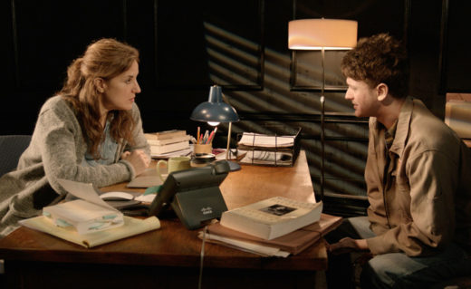 One day in her class, a student who never said a word comes out with, “Someday, I’m going to write a moment like that,” referring to a Dostoevsky passage. “Just saying it out loud takes courage,” Bella comments (to us). Next day, the boy, Christopher (Ephraim Birney), shows up in her office. (Bofill effectively switches between narration and immersion.)
